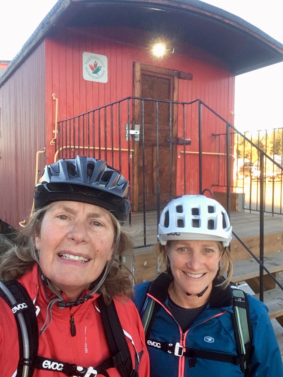 What a cold start! Minus 2 Celsius, as we said goodbye to Huan and Annalore, who dropped us off at the start point where we ended a few weeks ago 25km past the Coquihalla summit. We’d all had a great breakfast at the Home café in Merritt, consciously parking in the sun to keep the hydraulics in the seat posts from collapsing.