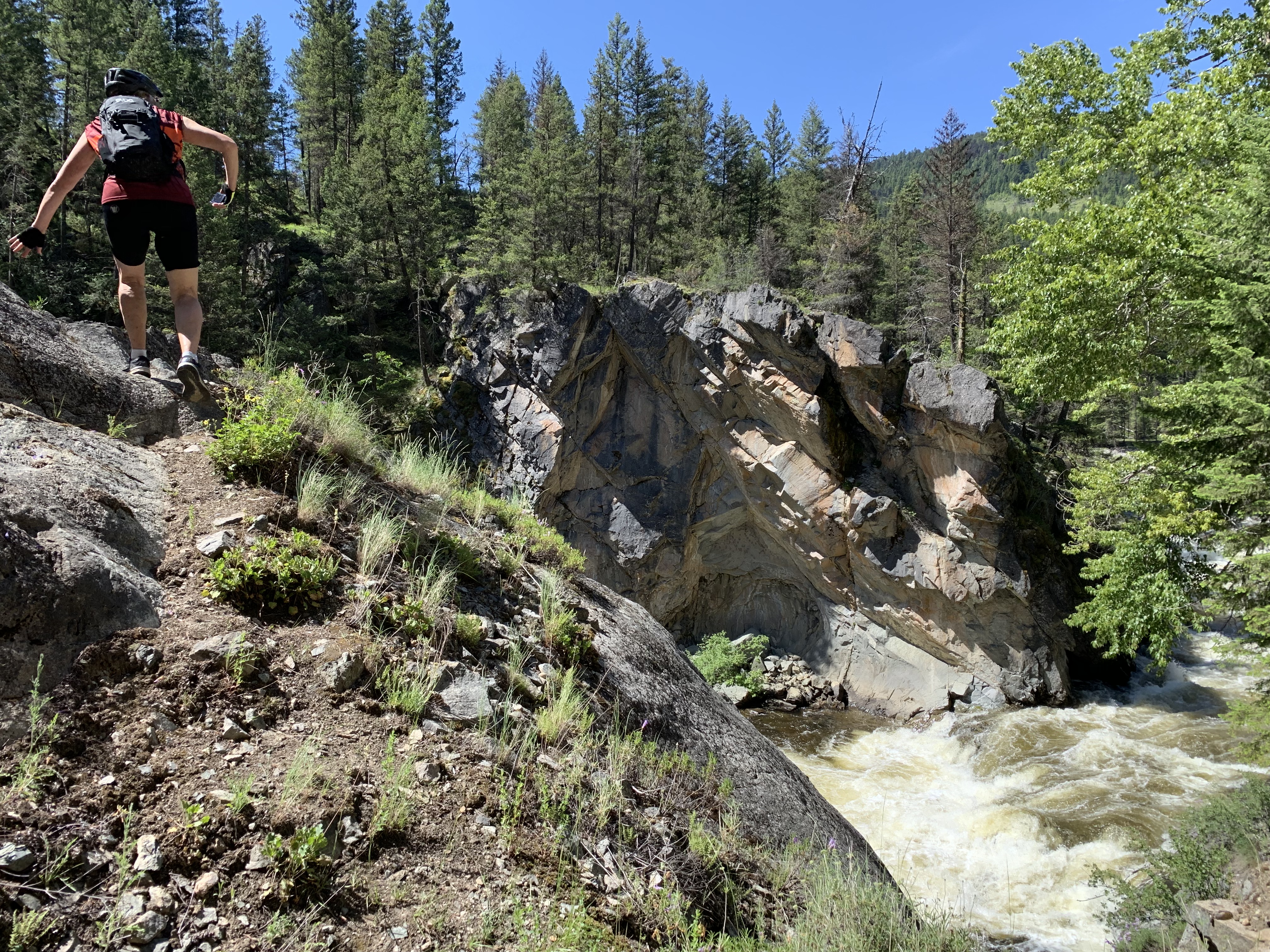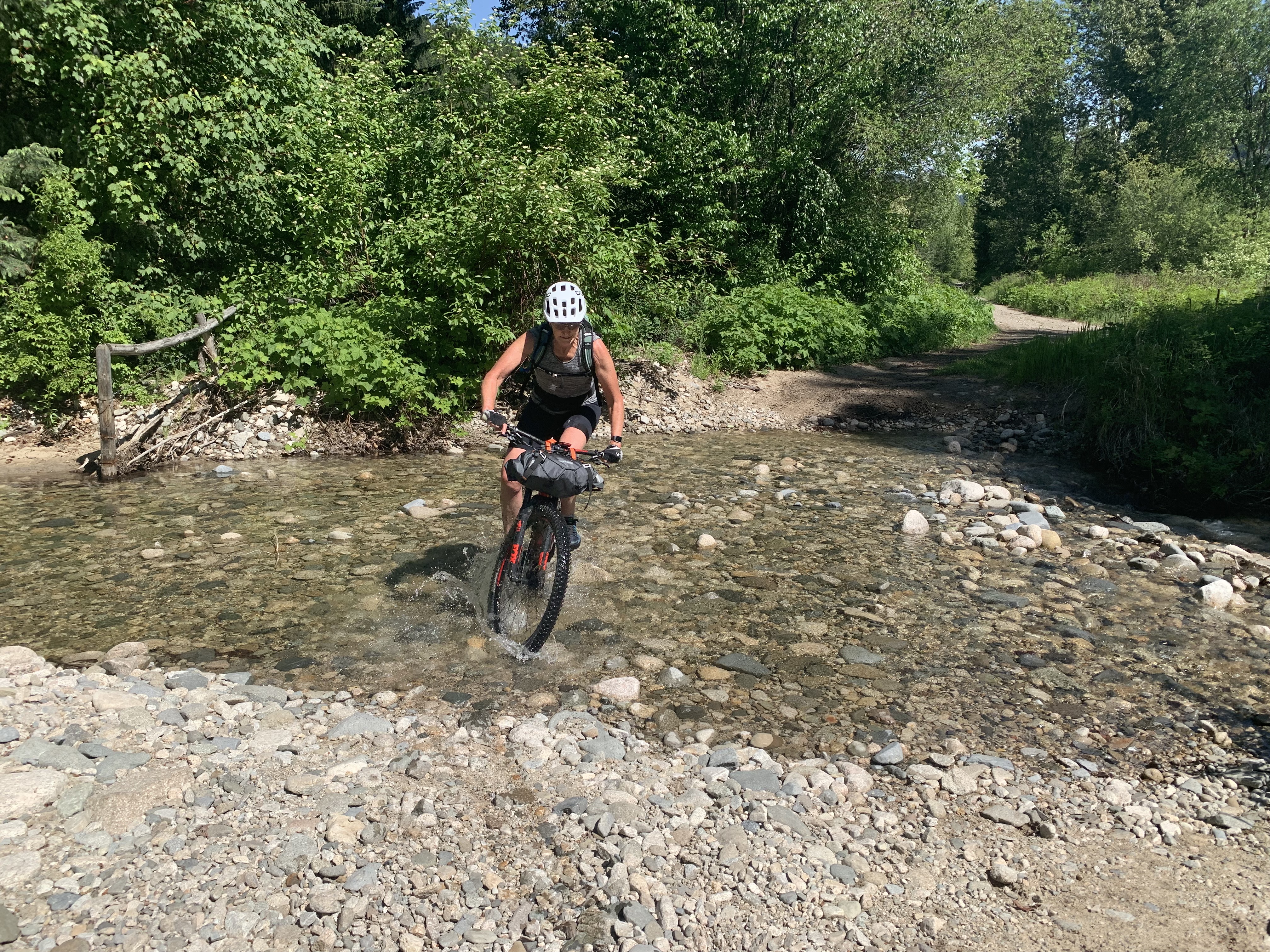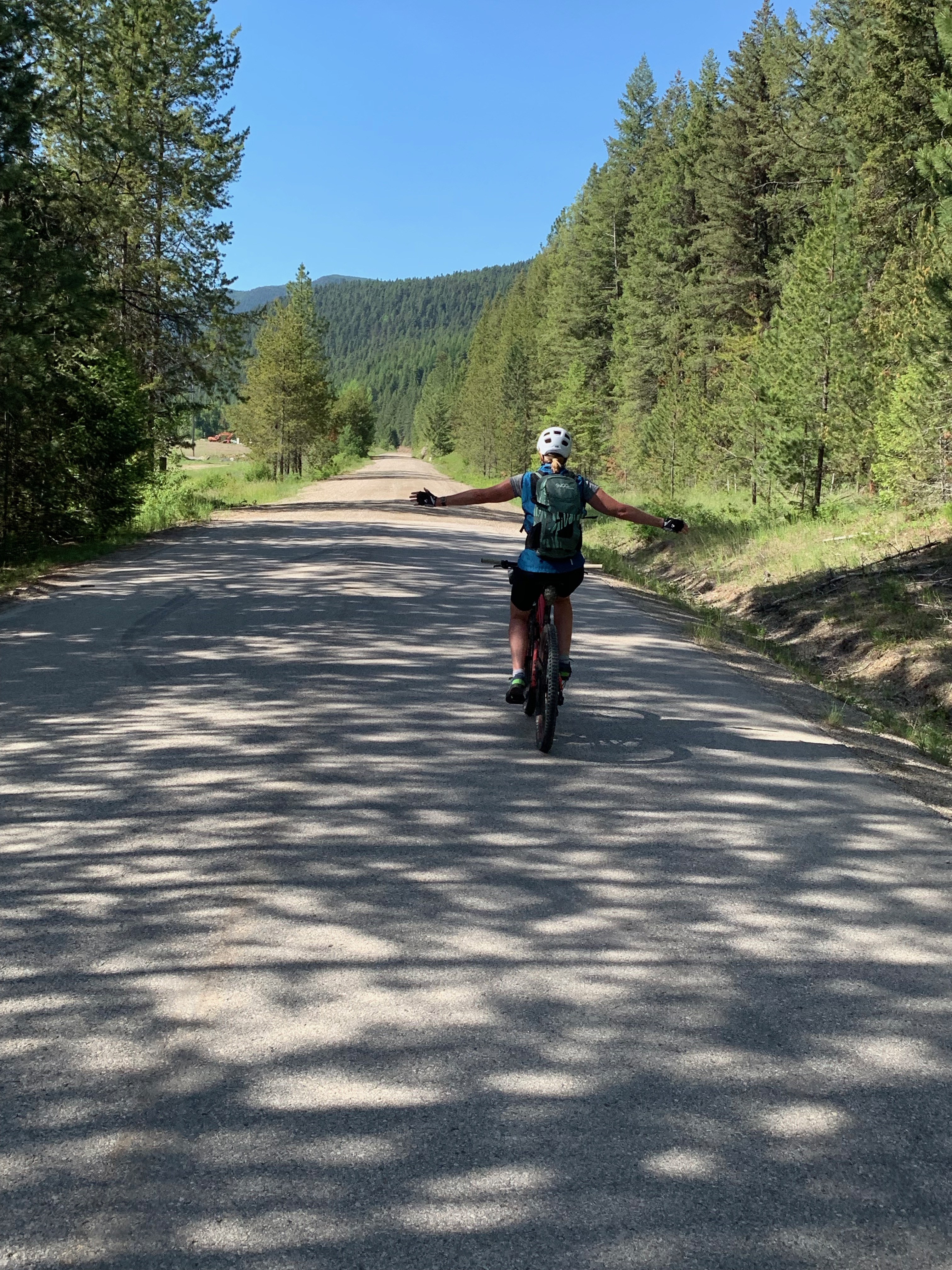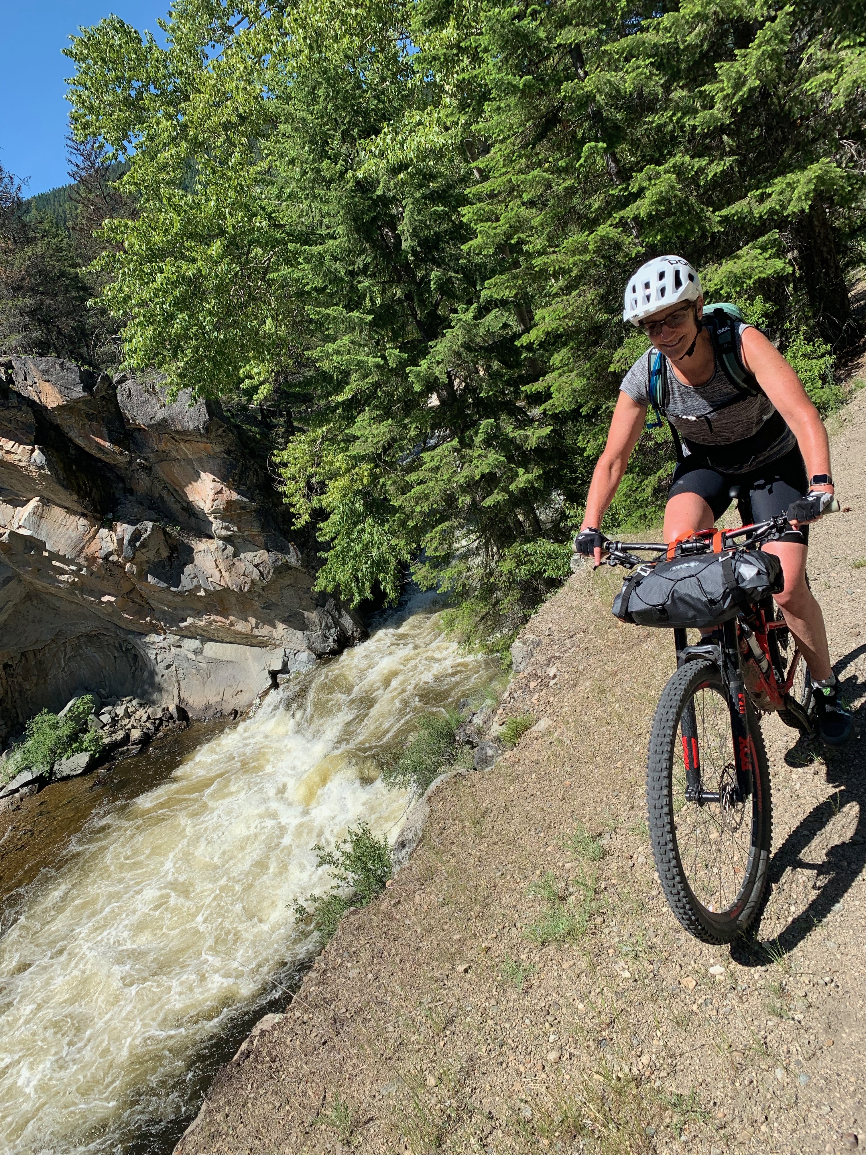 One thousand kilometres done – and much more fun today! Beautiful trail along the West Kettle River through pine groves and bright farm meadows with enough diversity to alleviate boredom.