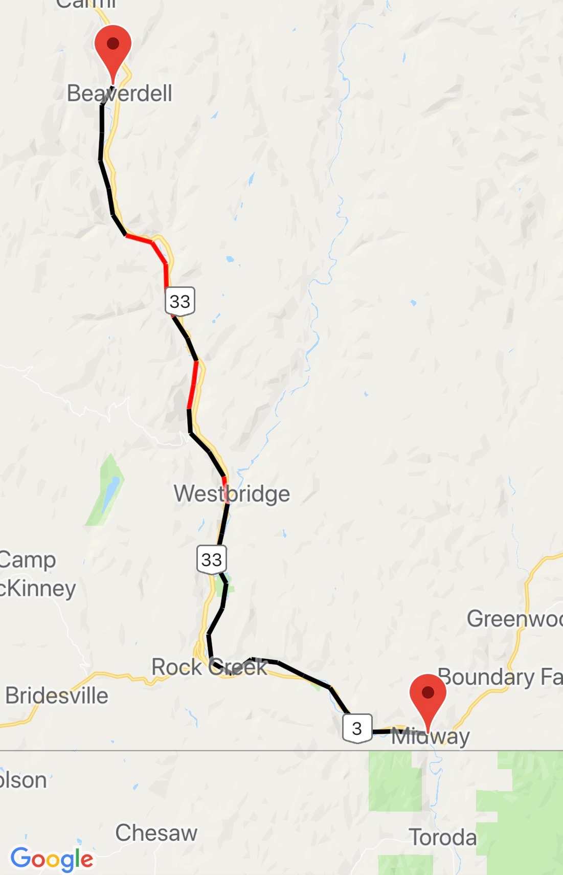 Breakfast was eggs and bacon in our little cabin in Beaverdell, and we waited for the garage coffee shop to open at 9 to ensure a caffeine injection before the start.