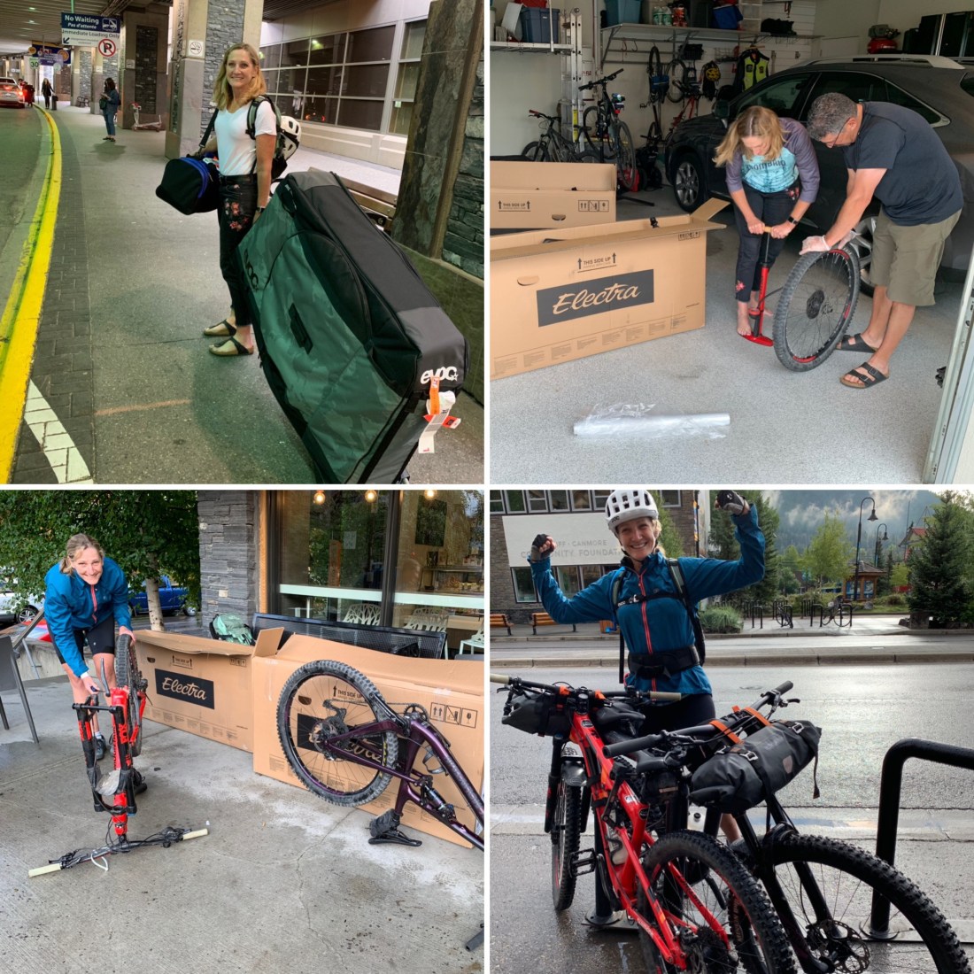 An easy flight to Calgary and a delightful evening with Jen Koury, husband Mike and daughter Hannah set us up well. Mike helped us transfer the bikes from their fancy bags into cardboard boxes which Jen had fetched from the local Bow Cycles earlier in the week and which we could put in the recycling in Banff before we rode back to Calgary.