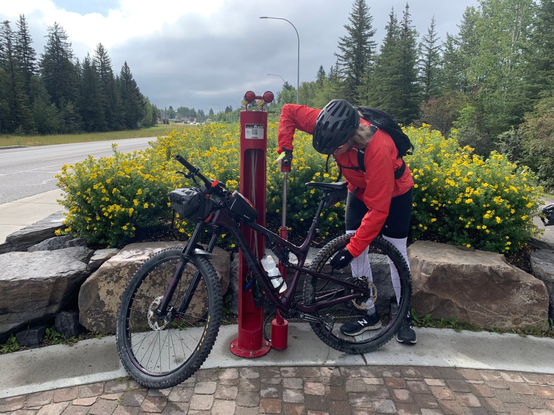 Relieved to get through the highway section unscathed, we were even more relieved when Mirrah of Three Sisters Taxis picked us up in her truck (with unexpected cold vodka soda drinks) and took us back to Canmore. Gill’s bike didn’t like the travel so much and the guys at Rebound Cycles gave it a tweak, and we settled in for an evening of a shower, pub dinner and drinks in one of our favourite Canadian towns so far.