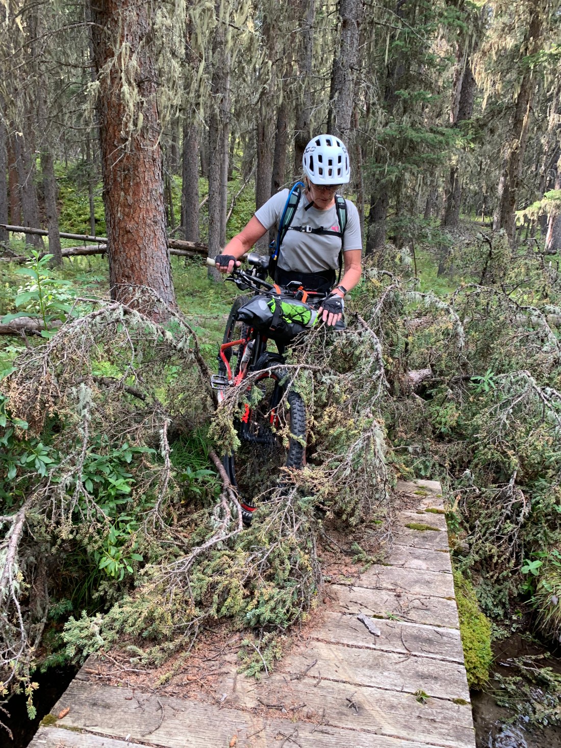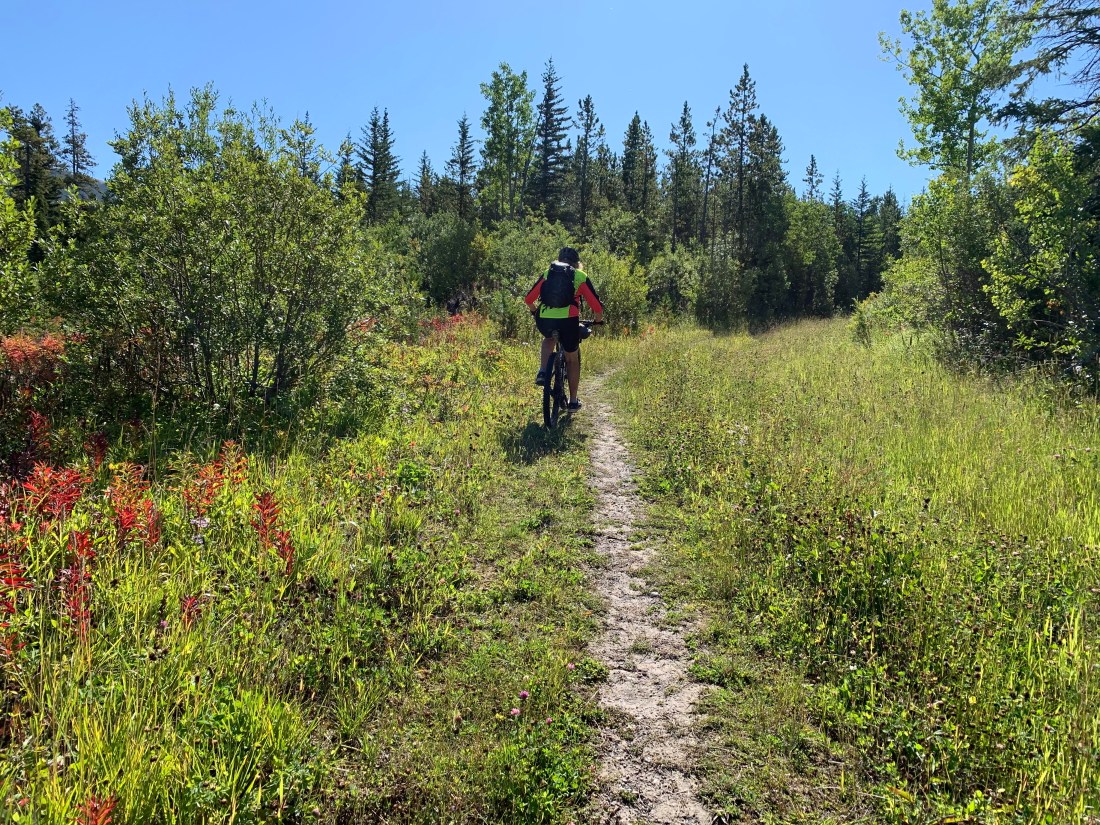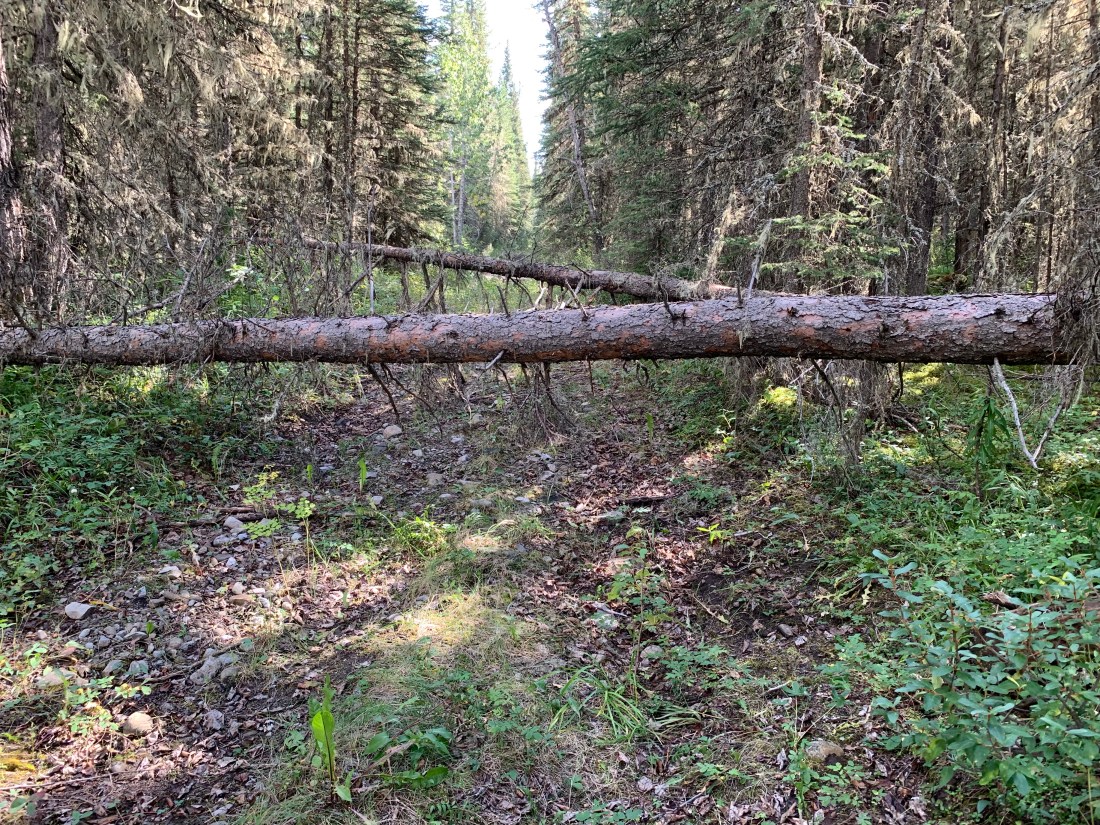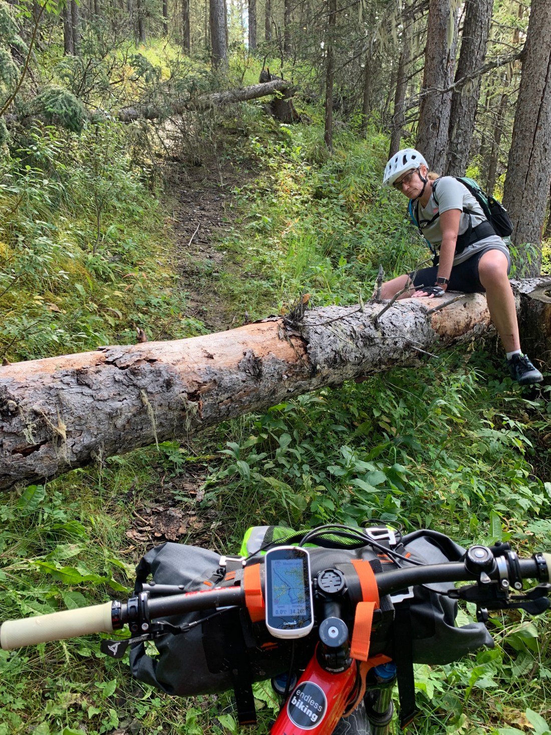 What a horrible, gruelling day. Anyone who rides bikes knows that to take more than 11 hours to do 69km means a no-fun day. @KananaskisCounty your Moose Loop trail has no business calling itself a trail or being part of the Great Trail or Trans Canada Trail! No maintenance and no signposts make it impassable at best, downright dangerous at worst. We stopped counting at 40 fallen trees across the 10km we fought with this “trail”. The path was mostly invisible and had not been used by anyone except occasional cows, moose or elk (and one cyclist) in a very long time. It’s mostly invisible and, when you do manage to put in a hundred metres of riding you’re fouled by a fallen tree or bog. The area has had severe flooding in past years and the folks at The Great Trail should have bypassed these trails completely.