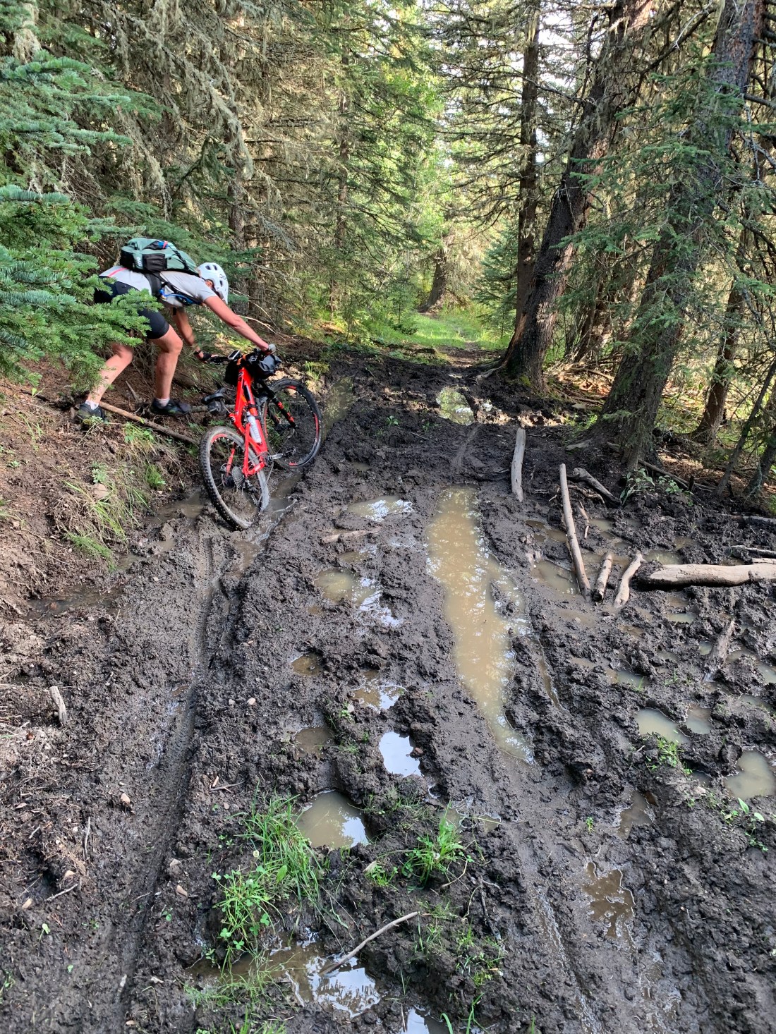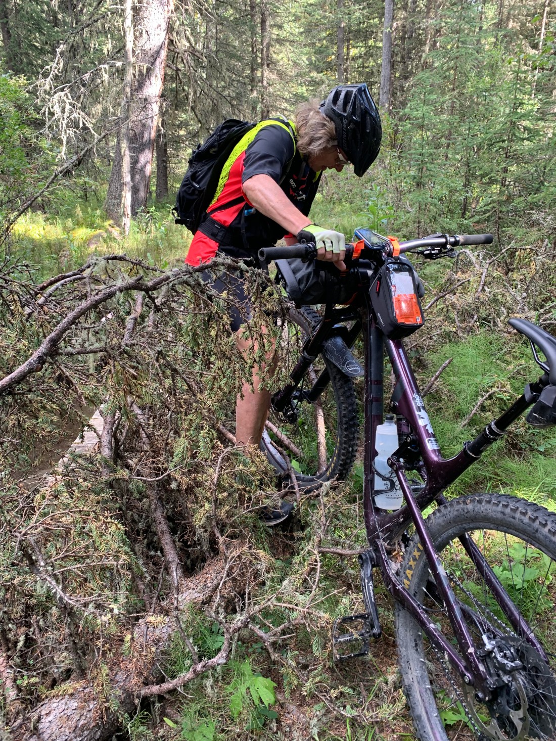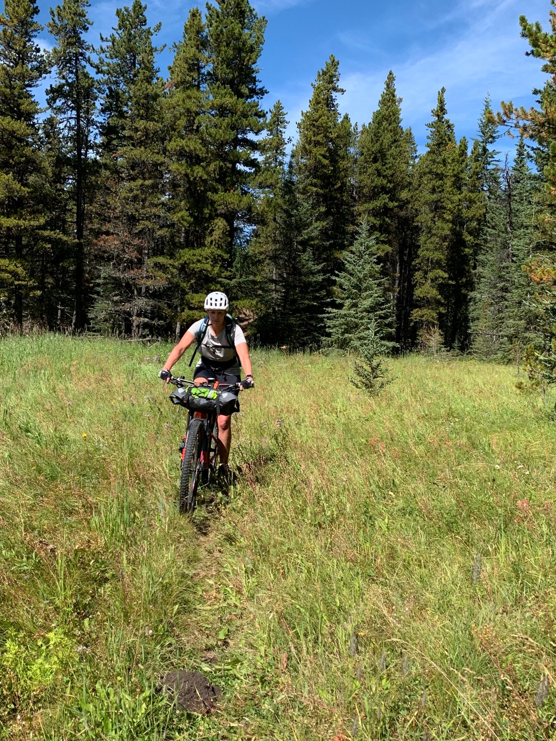 What a horrible, gruelling day. Anyone who rides bikes knows that to take more than 11 hours to do 69km means a no-fun day. @KananaskisCounty your Moose Loop trail has no business calling itself a trail or being part of the Great Trail or Trans Canada Trail! No maintenance and no signposts make it impassable at best, downright dangerous at worst. We stopped counting at 40 fallen trees across the 10km we fought with this “trail”. The path was mostly invisible and had not been used by anyone except occasional cows, moose or elk (and one cyclist) in a very long time. It’s mostly invisible and, when you do manage to put in a hundred metres of riding you’re fouled by a fallen tree or bog. The area has had severe flooding in past years and the folks at The Great Trail should have bypassed these trails completely.