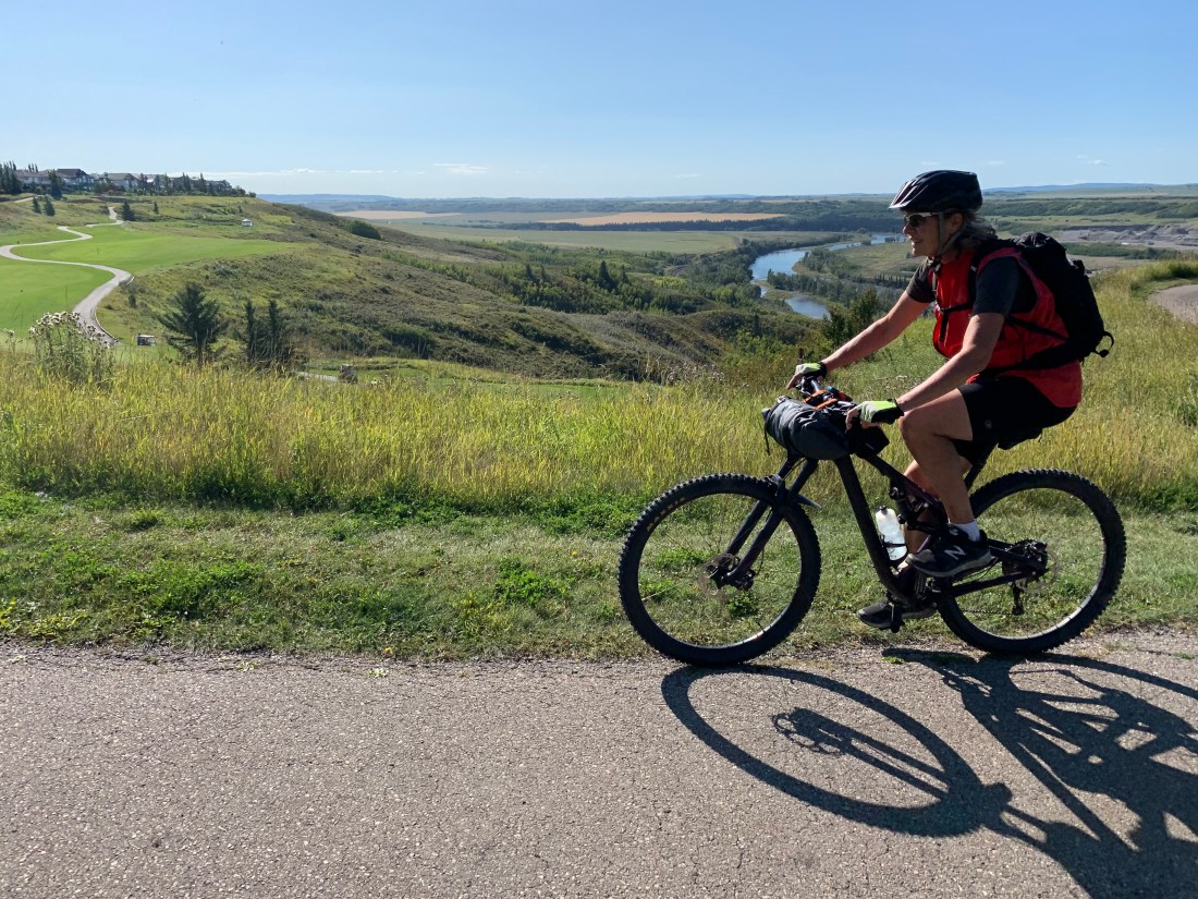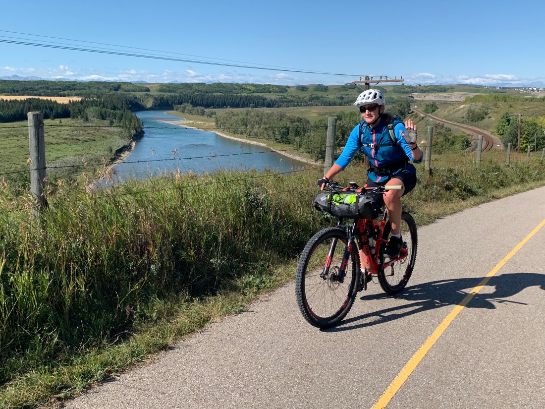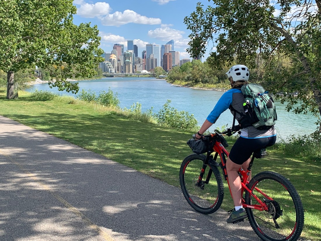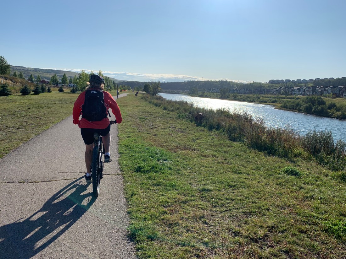 What a difference a day makes. Day 30 on the trail – from the charming hamlet of Bragg Creek to Calgary – was a rolling cruiser ride along mostly paved trails with lovely grassland and river scenery.