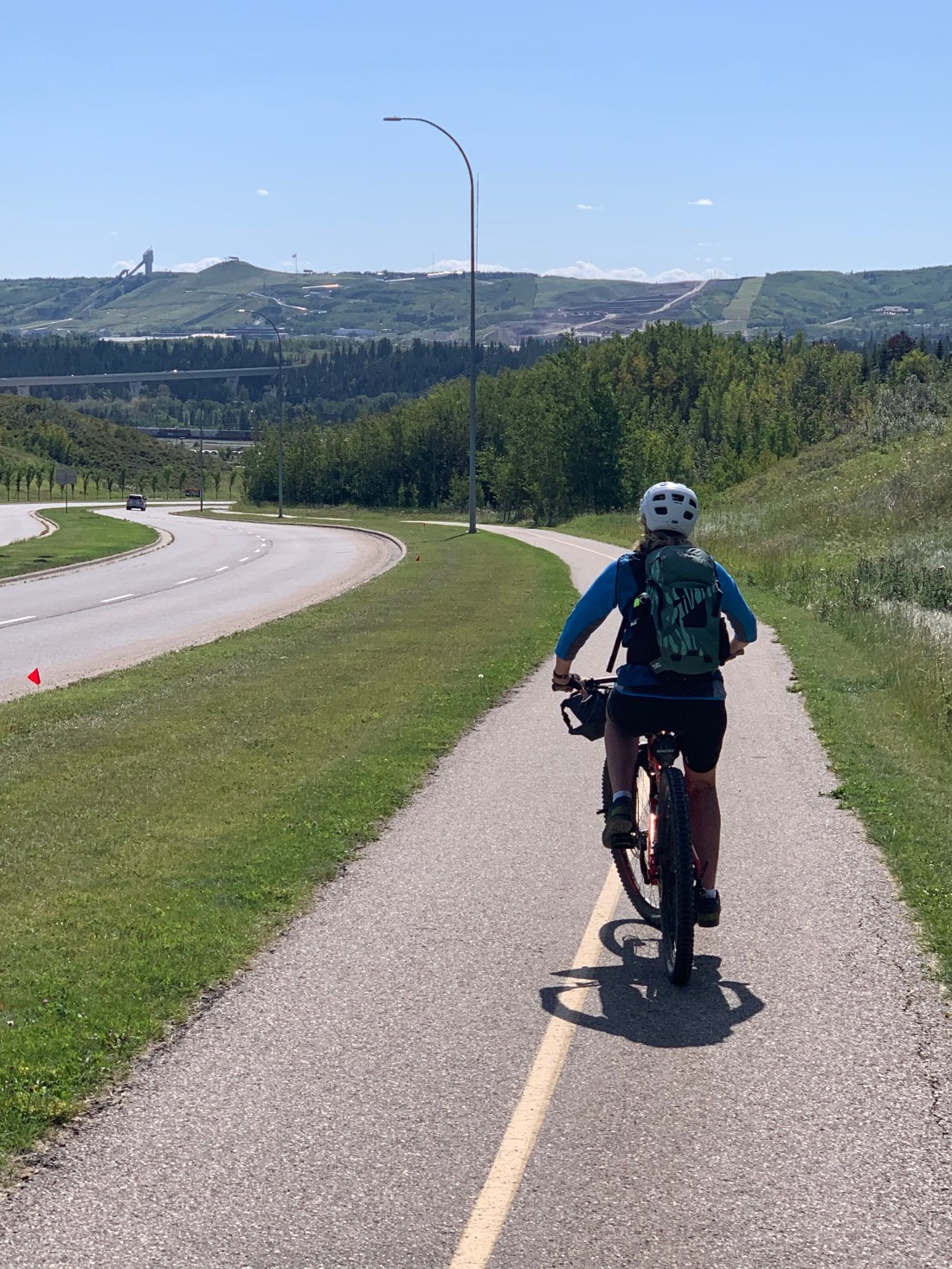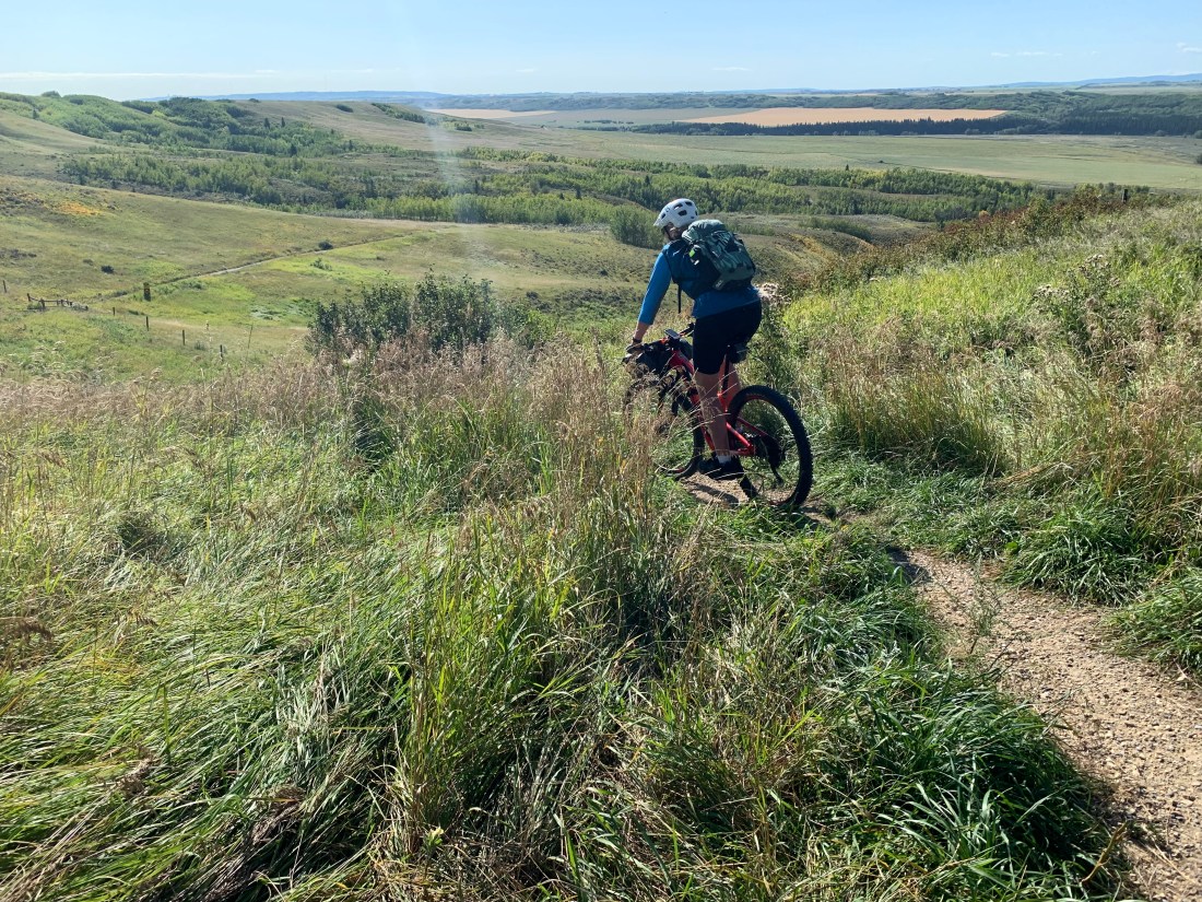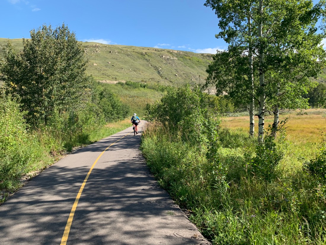 What a difference a day makes. Day 30 on the trail – from the charming hamlet of Bragg Creek to Calgary – was a rolling cruiser ride along mostly paved trails with lovely grassland and river scenery.