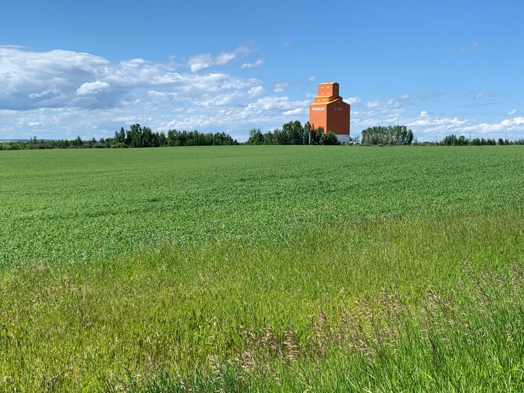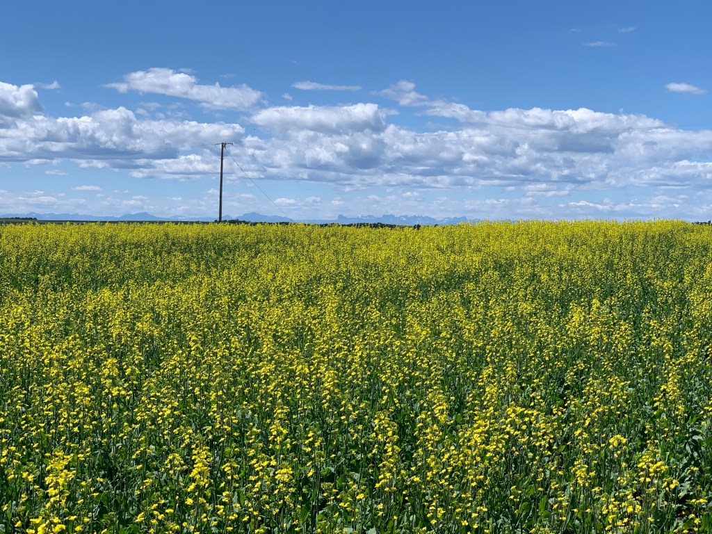 Alberta is still green after about the same kind of rains we have had in Vancouver, and the colour suits it. Broken only by the luminous yellow of canola, or occasional ponds, the green rolls on under enormous blue skies to the Rockies in the distance and you just can’t help looking.