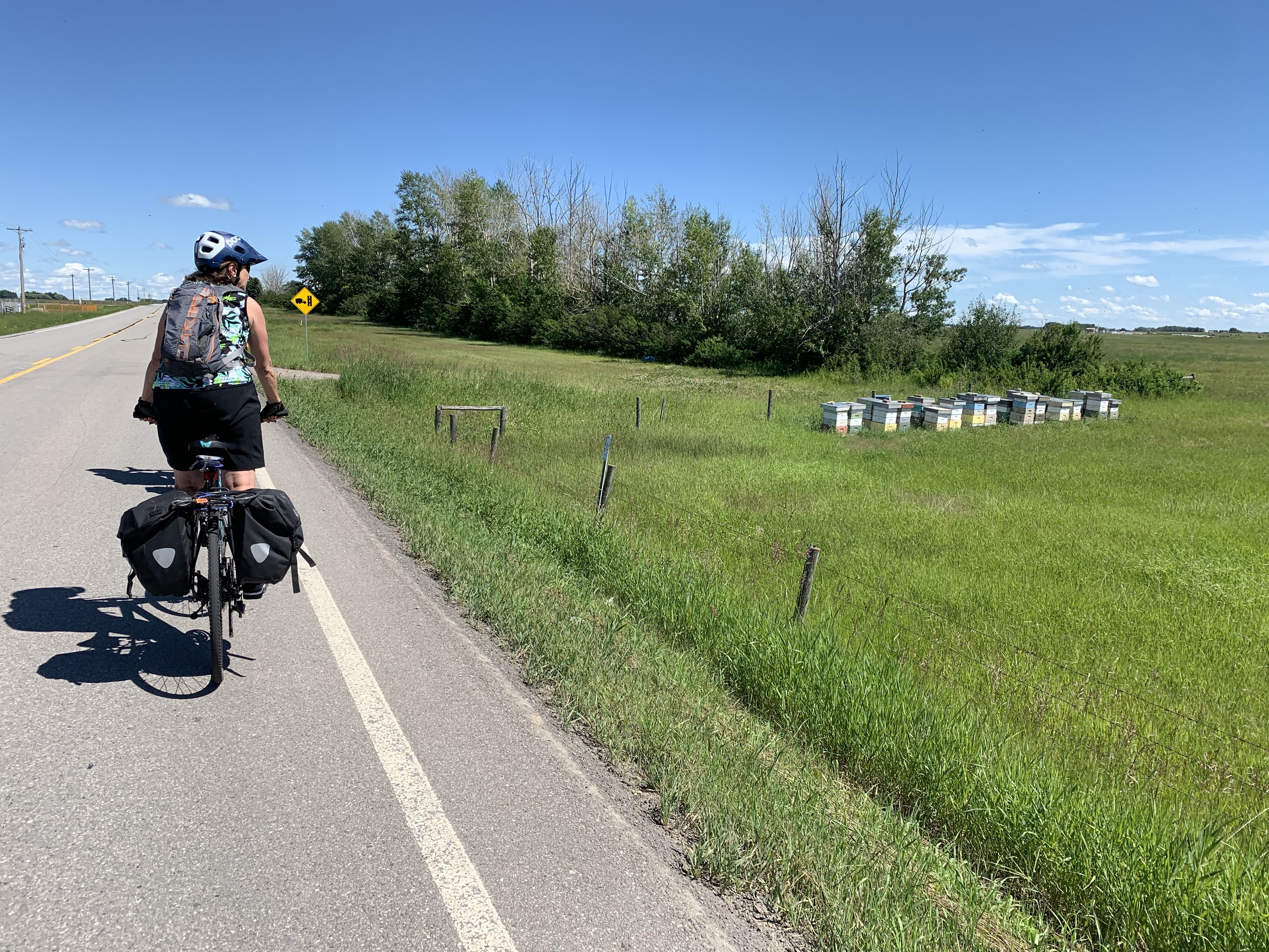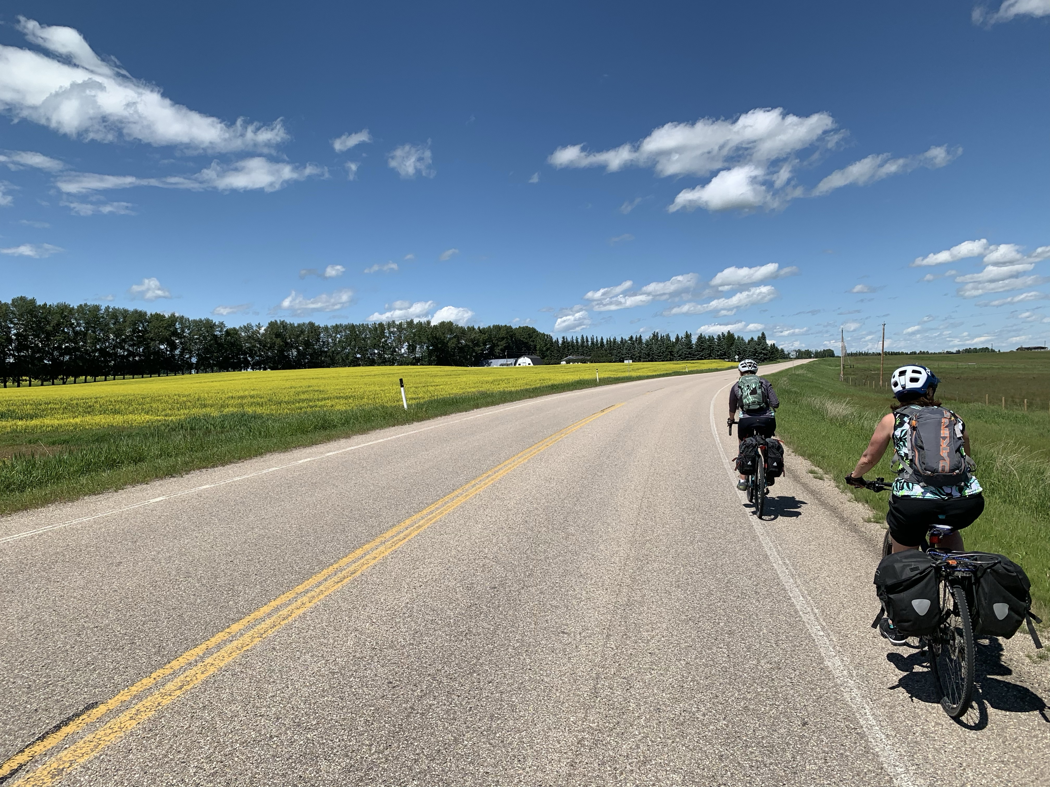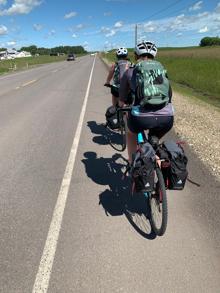 We also criss-crossed busy highways, including Highway 2 from Calgary to Edmonton – one of Canada’s busiest highway stretches. Cycling along its baby brother – the 2A – north from Airdrie was a slog. Still pretty landscapes, but a slog not made more popular by the pesky head wind.