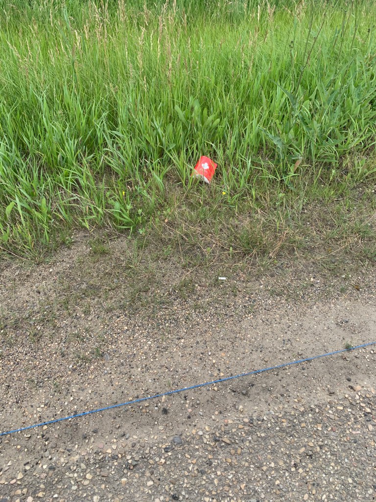 Not long after Maskwacis we noticed a blue twine lying next to the road. It continued for more than four unexplained kilometres – as incongruous as the seagulls in the Canadian Tire parking in Wetaskiwin and the pelican that flew overhead in Ponoka. Who knows …