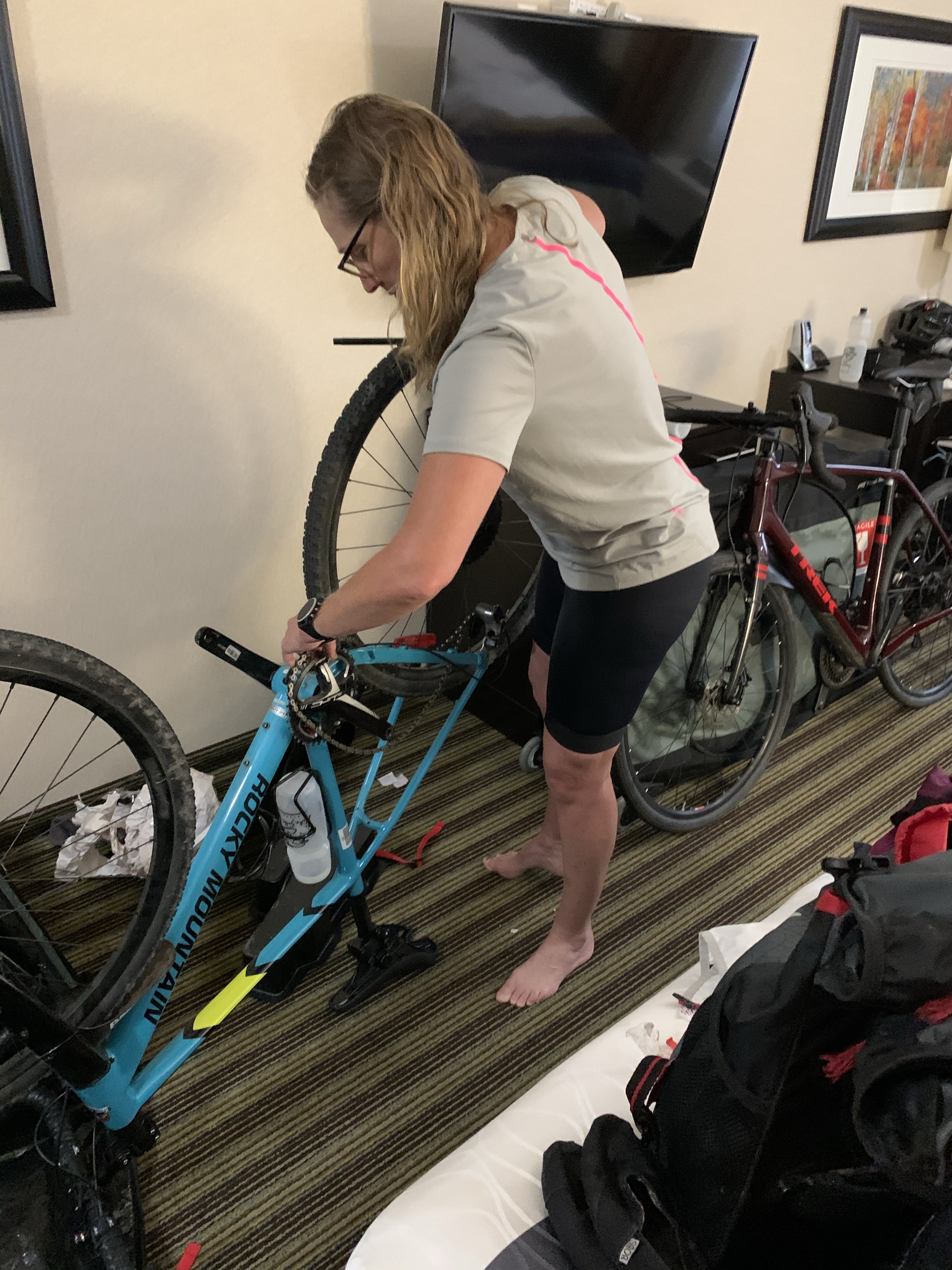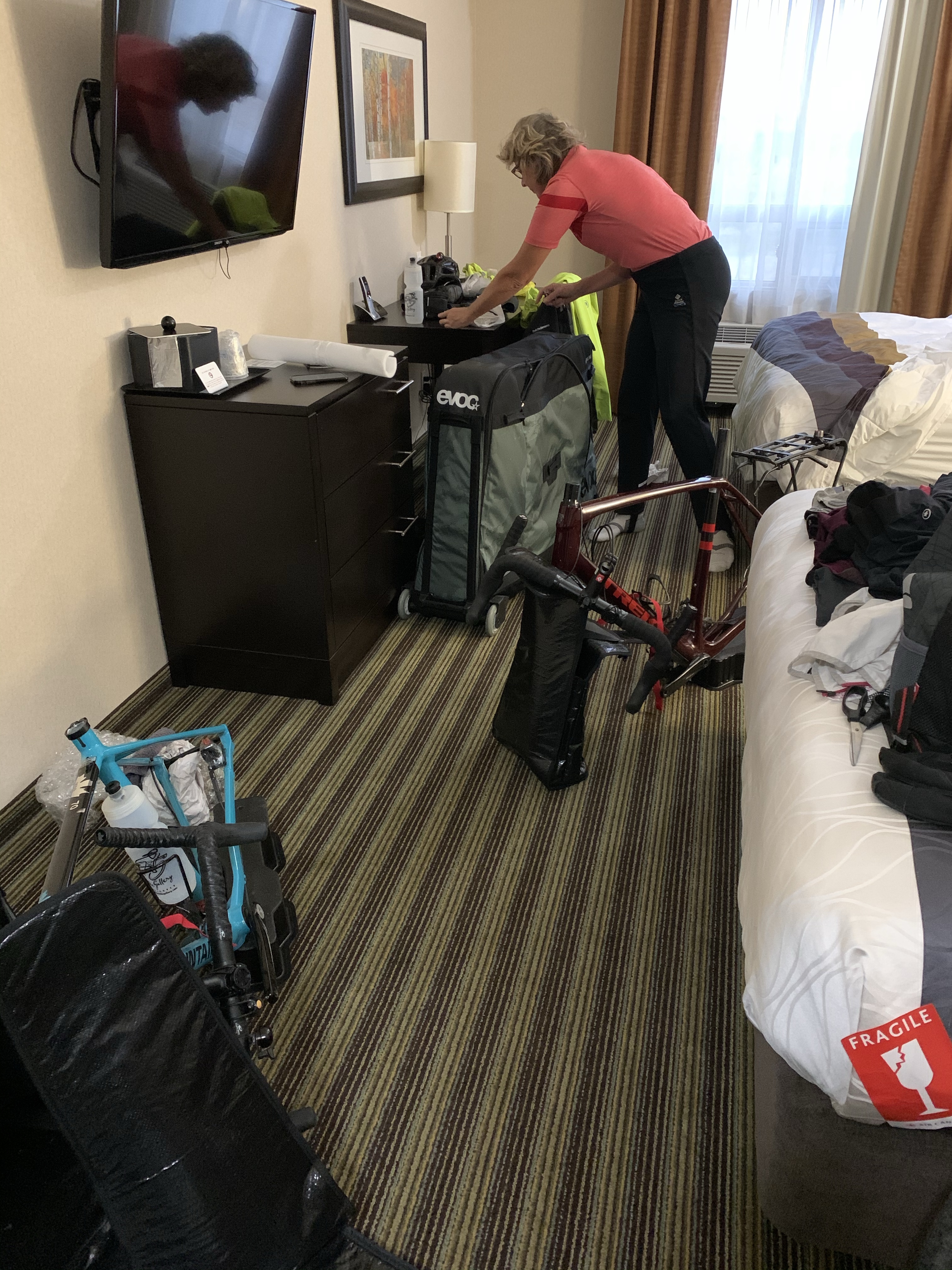 We bought woolly toques for cold heads, filled up on hot soup and checked into the Kanata Inn to sort out the bikes.