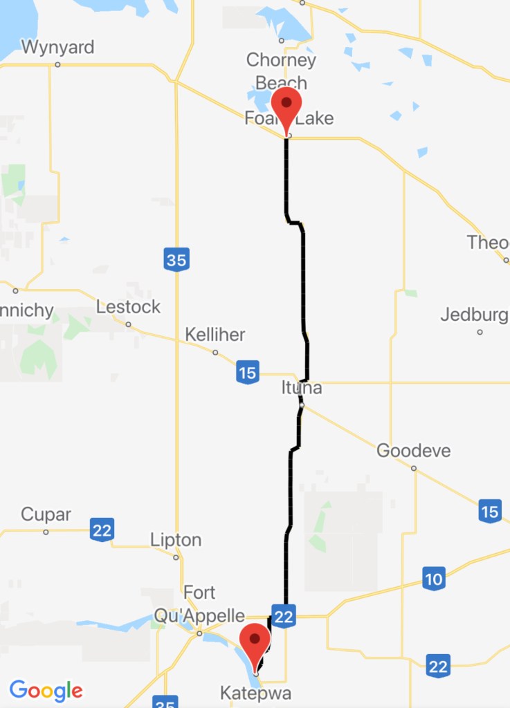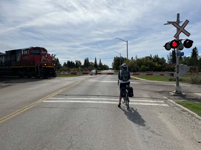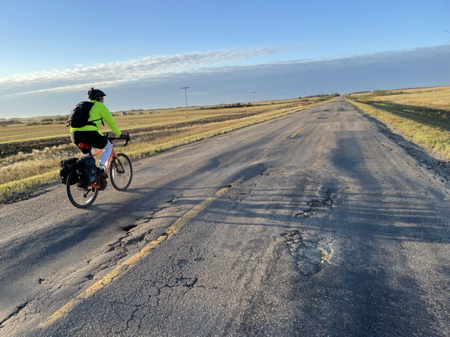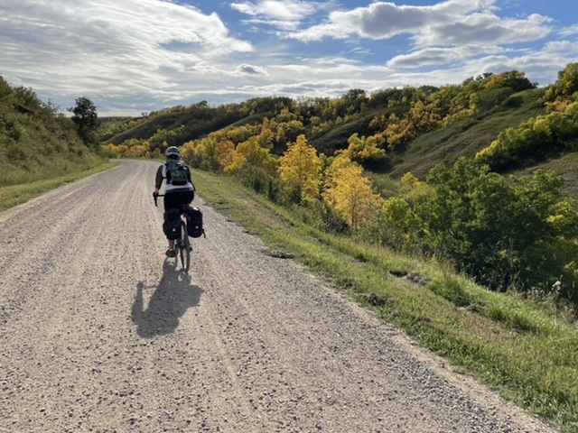 The last five kilometres presented us with a lovely sweeping farm track and the spectacular descent into Katepwa in the Q’Appelle valley to join up with the Trans Canada Trail again.