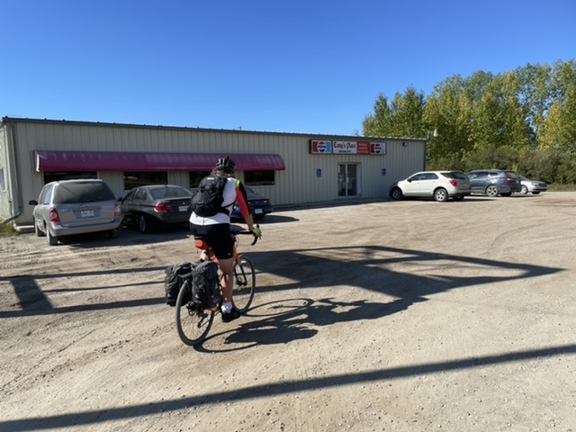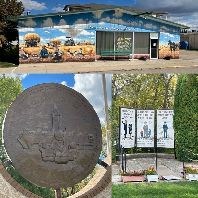 We made good time though – getting to Tony’s place in lovely Churchbridge after 70km in time for them still serving breakfast. Churchbridge is a charming little town – murals on the buildings, a war memorial and a monument to the local designer of Canada’s 125th anniversary coin.