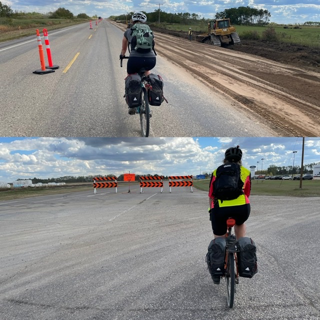 A few roadworks and detours later we said goodbye to Saskatchewan and hello to Manitoba with a flying descent into the valley of the Assiniboine River, followed by a long, slow climb out.