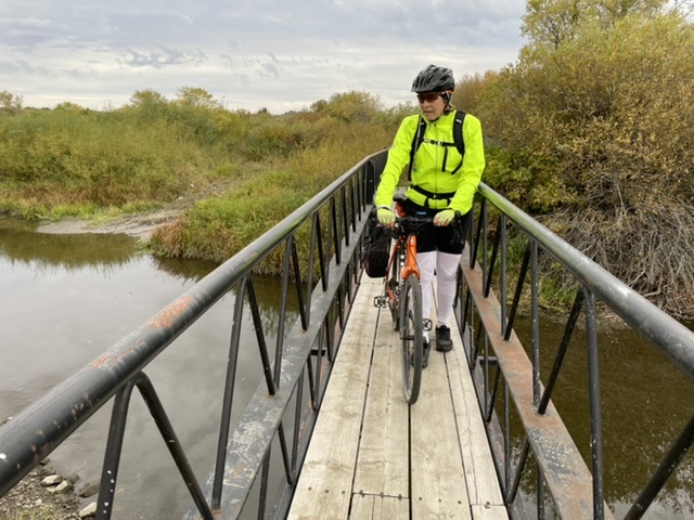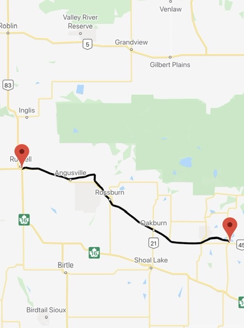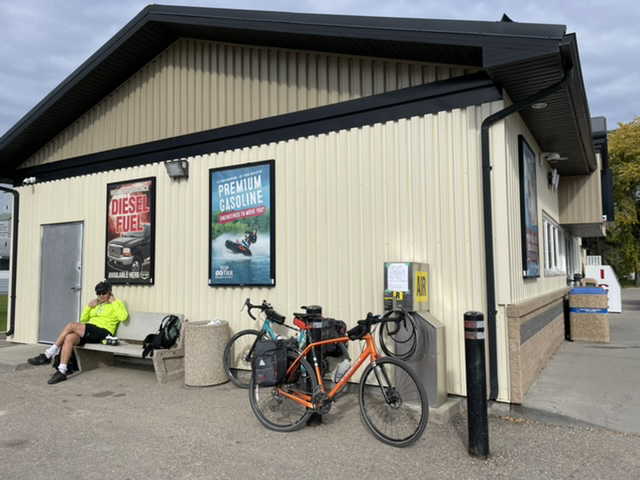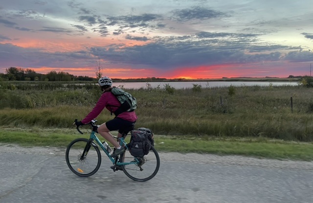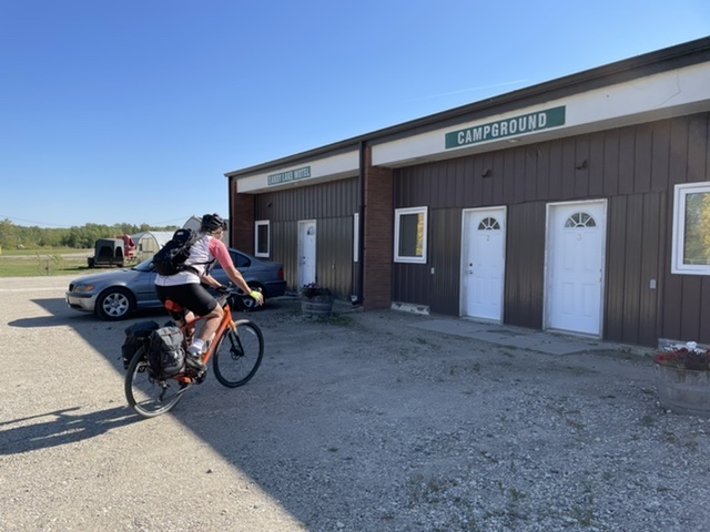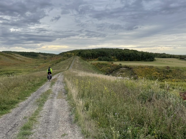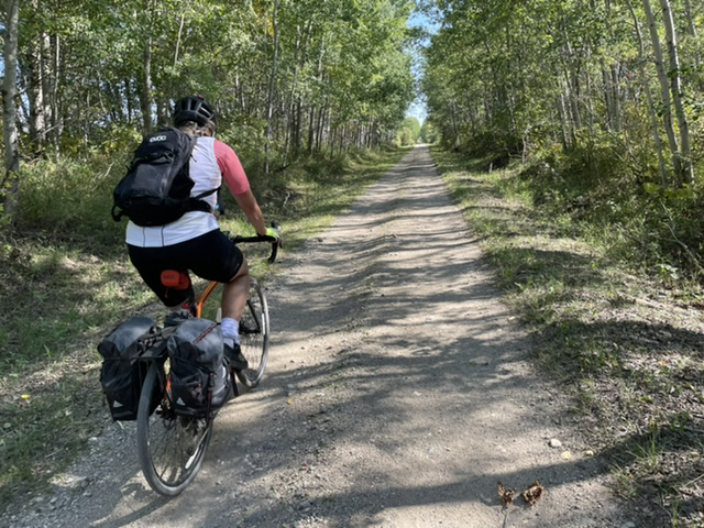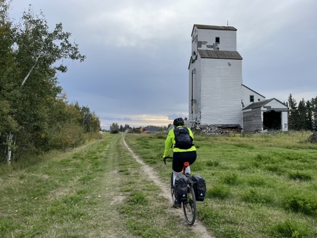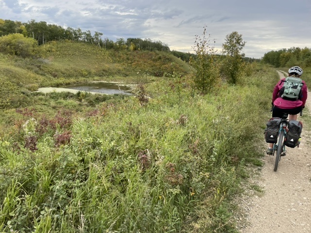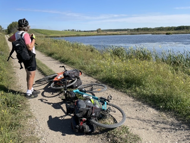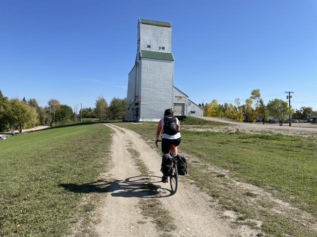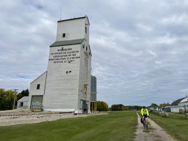 It was a day of grain elevators and not much else for 98km along the Rossburn Trail (an old railway line). The last 12 km did try to make up for the rest with a decent surface, great bird life around the many lakes, and trees to shelter us from the wind.
