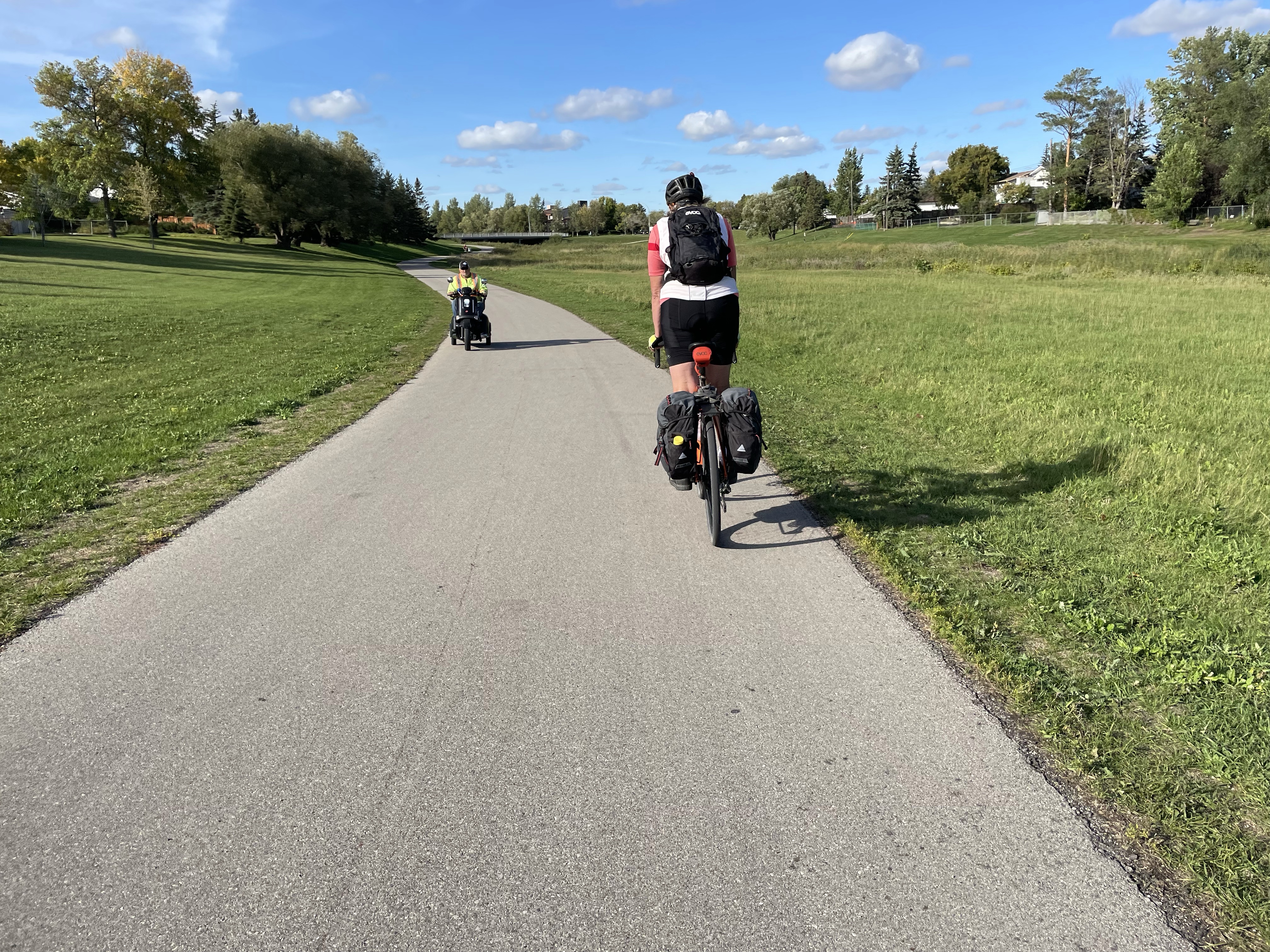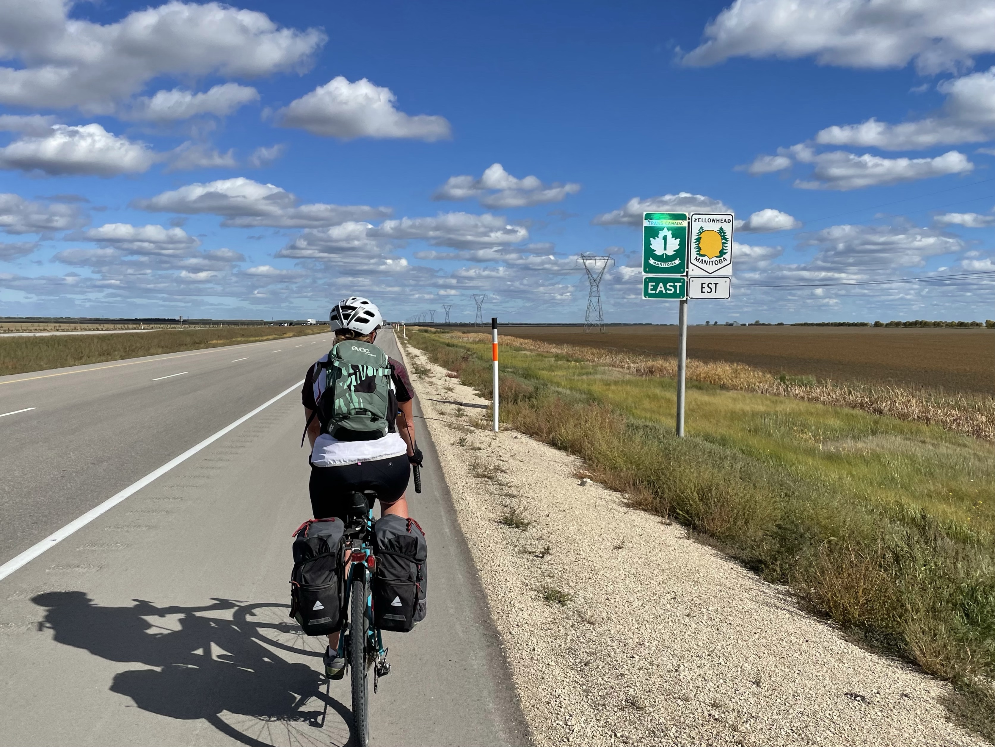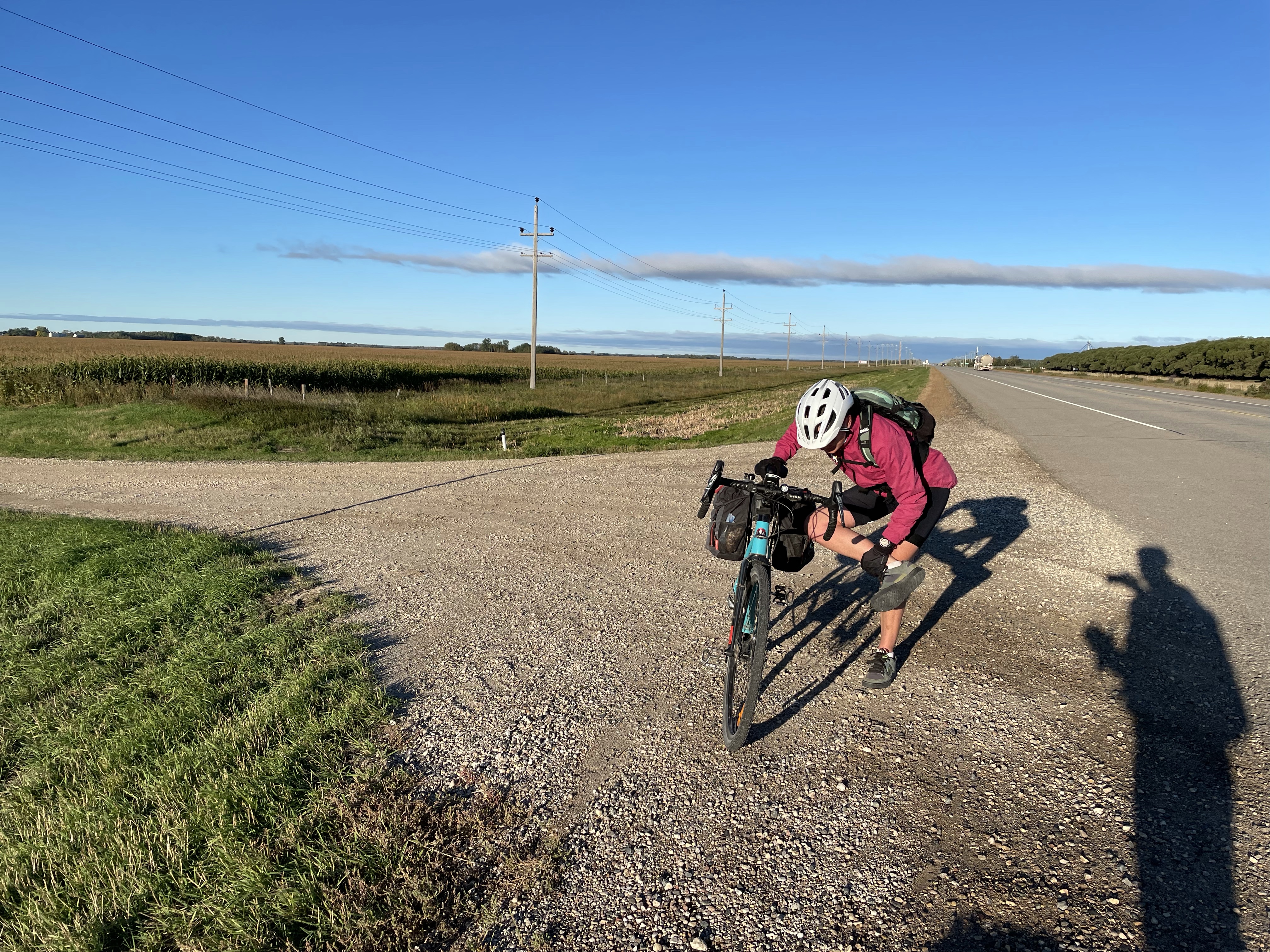 We finally crossed the Assiniboine River again and survived roadworks and traffic jams through the industrial outskirts of Winnipeg. But then Google Maps showed us a bike route all the way to our hotel near the airport. What a lovely last 15km – all on bike paths through areas being rewilded for biodiversity, through neighbourhoods and along creeks. It wrapped around the south of the airport and took us right to our door. The pain reminded us what we had ridden but the bike paths made the memory more pleasant.