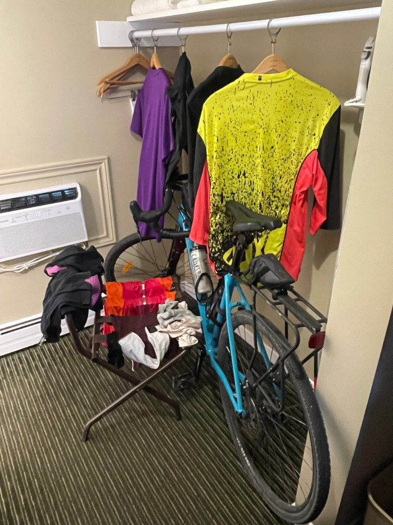 Well that was more like it … from a cycling perspective anyway. The trail was open all the way which may have been harder on the bodies, but was easier on the minds than the roads.