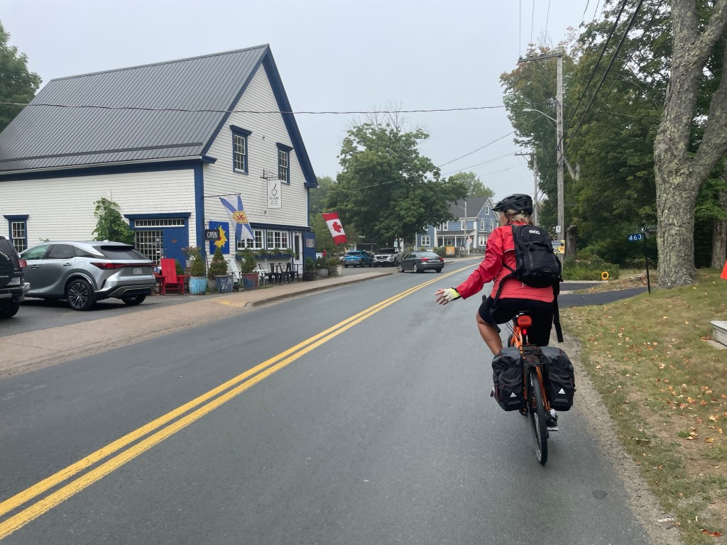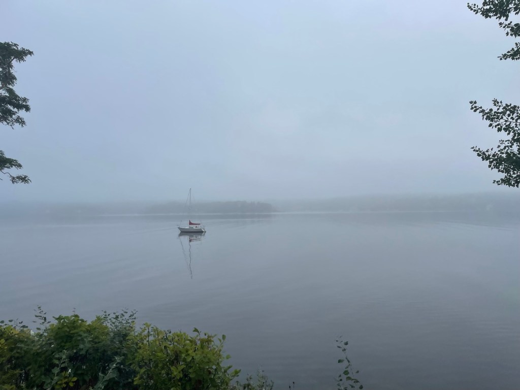 Another foggy start soon turned to drizzle over coffee at the Barn across the Lunenburg harbour. Then light rain before our breakfast stop at the Barn in Mahone Bay about 12km away. Mahone Bay is clearly lovely, but we couldn’t see much.