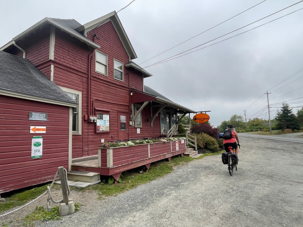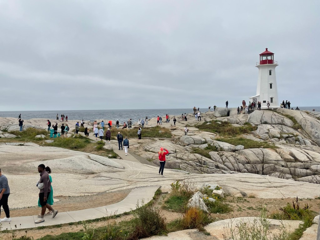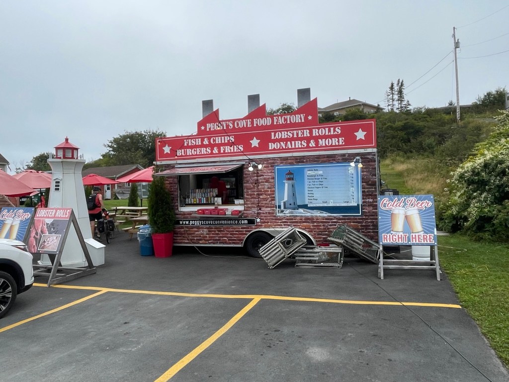 Peggy’s Cove just down the road is nothing like this. Here it’s all tour buses and thousands of people clamouring to get their perfect shot of the lighthouse and fishing cottages. We rode straight through without stopping and chose lunch at a little shack in the next town. The food was great and we ate alone.